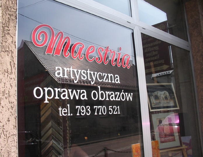 Maestria, ul. Warszawska 40, 42-200 Częstochowa, tel. 0 793 770 522. Tagi: oprawa obrazów, obrazy, Częstochowa, ramy do obrazów, oprawa grafik, passe-partout, oprawa zdjęć, oprawa luster, oprawa gobelinów, oprawa pamiątek, ramy do luster, profile ram, galeria sztuki Częstochowa, sprzedaż obrazów. |
